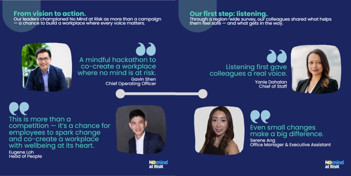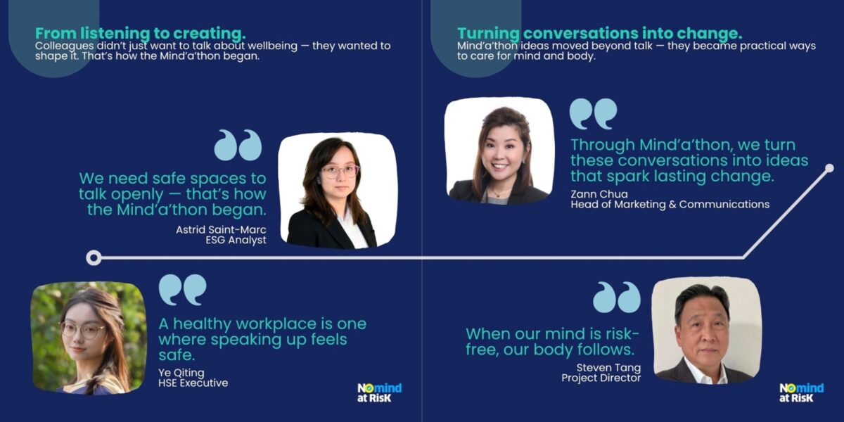As Zann Chua, Regional Head of Marketing & Communications, puts it, “Wellbeing at work means having space to pause, reflect and speak up. Through Mind’a’thon, we turn these conversations into ideas that spark lasting change.”